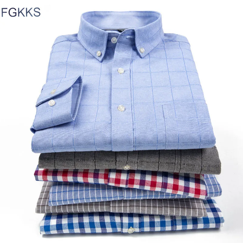 ORIGINAL FGKKS Business Men Dress Shirt Long Sleeve Solid Mens Work Shirts Fashion Square Collar Casual Male