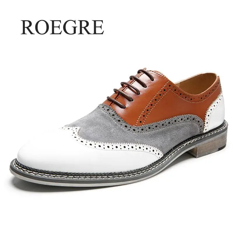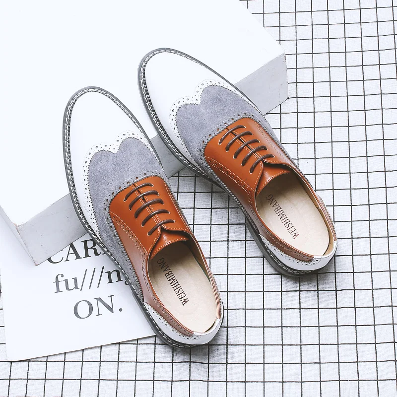 New Mixed Colors Men Shoes Vintage British Cow Leather Formal Dress Shoes Carved Brogue Business Ca