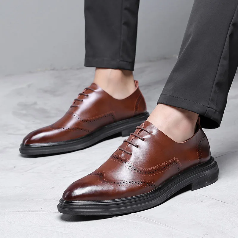 BEST SELLER Genuine Leather Dress Men Shoes Lace Up Italy Retro Business Wedding Formal Flats Shoes For Men