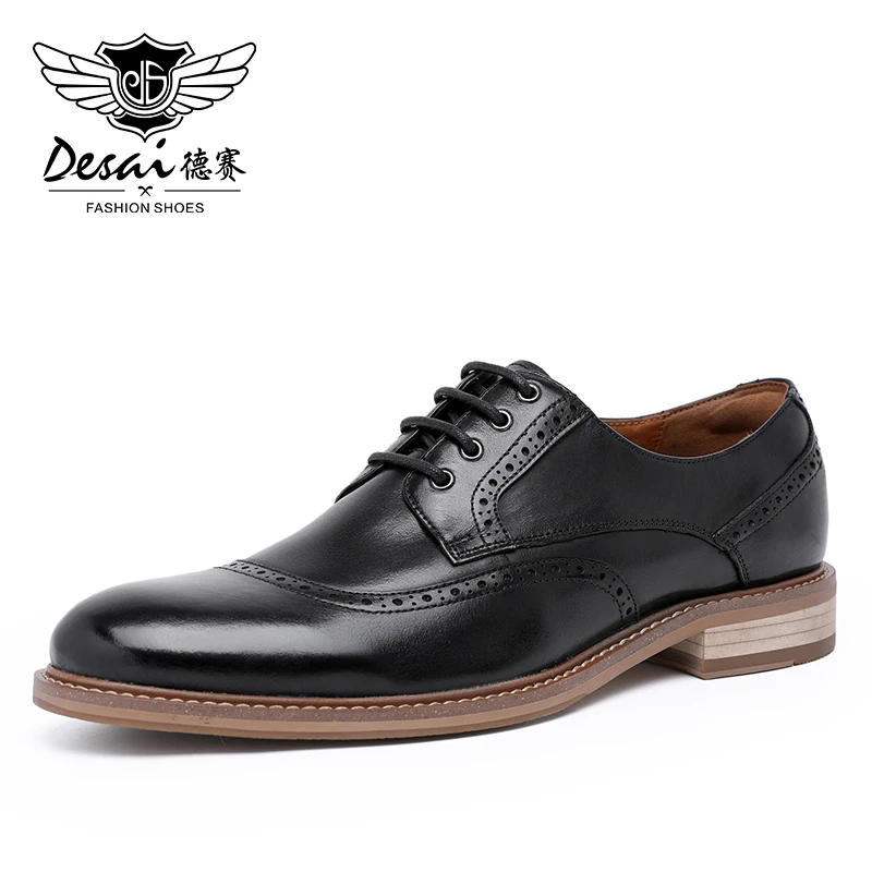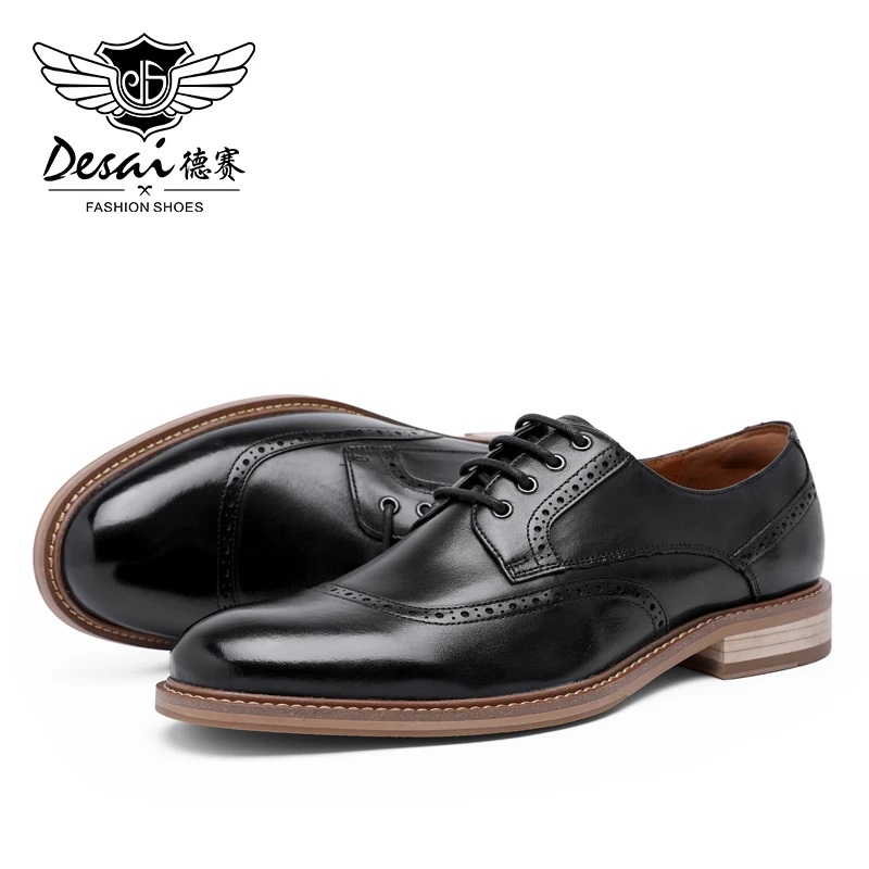 HIGH QUALITY Desai Luxury Genuine Leather Men Formal Shoes Pointed Toe Top Quality Cow Leather Derby Men Dress S